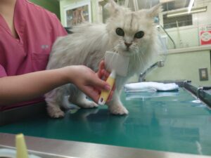 小さい頃からやっているとブラッシングが好きな子になりますが、やっていないとこの猫(シラス)のようにブラシに怒るようになってしまいます・・・。