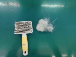 少しでもサボると毛玉ができてしまうので、負傷しないよう気をつけながら日々少しずつブラッシングされるシラスでした。